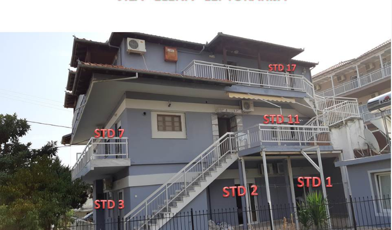 ВИЛАТА “ELENA“СЕ НАОЃА ВО ЛЕПТОКАРИЈА НА САМАТА ПЛАЖА (ПРВ РЕД).РАСПОЛАГАМЕ СО ТРОКРЕВЕТНИ СТУДИЈА НА ПРВИ КАТ,СИТЕ ОПРЕМЕНИ СО КУЈНИ,КУПАТИЛО СО ВЦ,ТВ,КЛИМА УРЕД(СЕ ДОПЛАЌА 7€ ОД ДЕН ДОКОЛКУ СЕ КОРИСТИ),БАЛКОНИ СО ДИРЕКТЕН И СТРАНИЧЕН ПОГЛЕД НА МОРЕ И ЕДНО СТУДИО СО ПОГЛЕД НА ДВОР.СИТЕ СОБИ СЕ РЕНОВИРАНИ СО НОВИ КУПАТИЛА И КУЈНИ И ДУШЕЦИ.