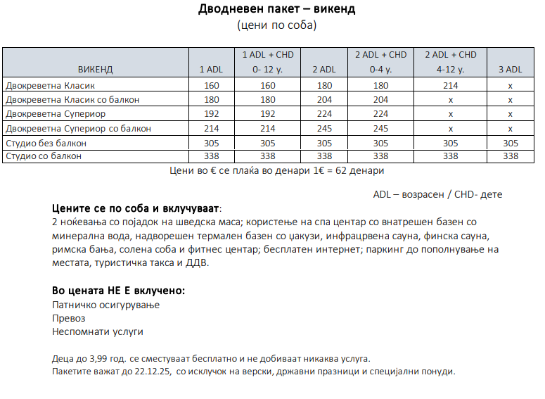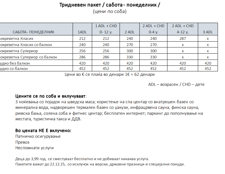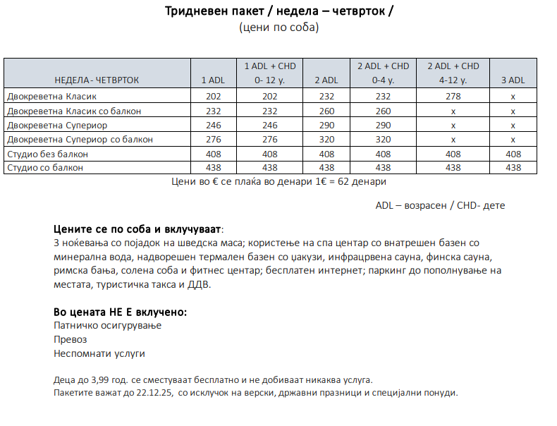 Цени валидни за термин 01.03.2025 - 22.12.2025