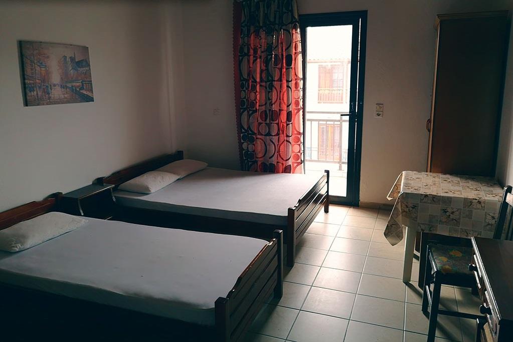 бр.203- 1/3 студио со два грчки француски кревета, поглед кон заден двор и градина. Се наоѓа на 1 кат.