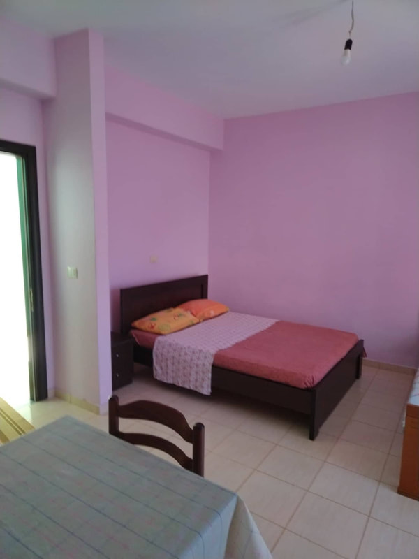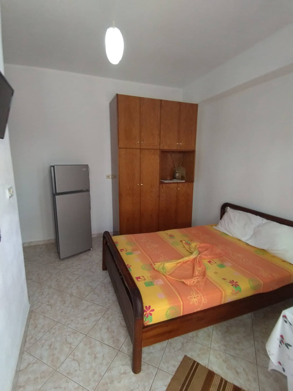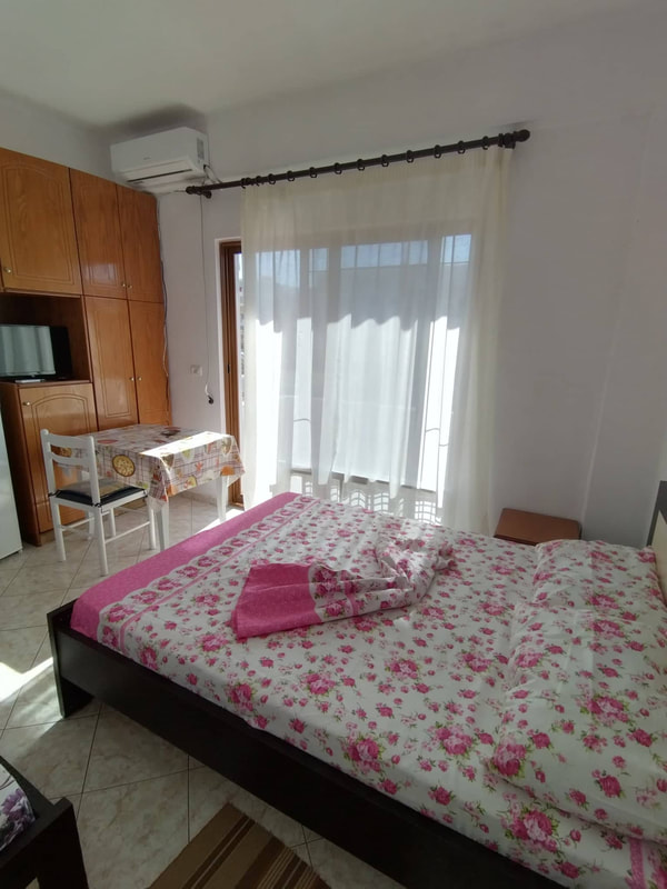 двкреветно студио на први кат има еден брачен кревет ,кујна опремена со садови,клима ,тоалет ,ТВ,тераса