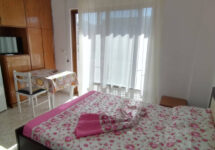 Апартман на втори кат со две соби (во спалната има еден брачен кревет и еден единечен) и во кујната има исто еден брачен и еден единечен кревет,кујна опремена со садови,клима ,тоалет ,ТВ,тераса