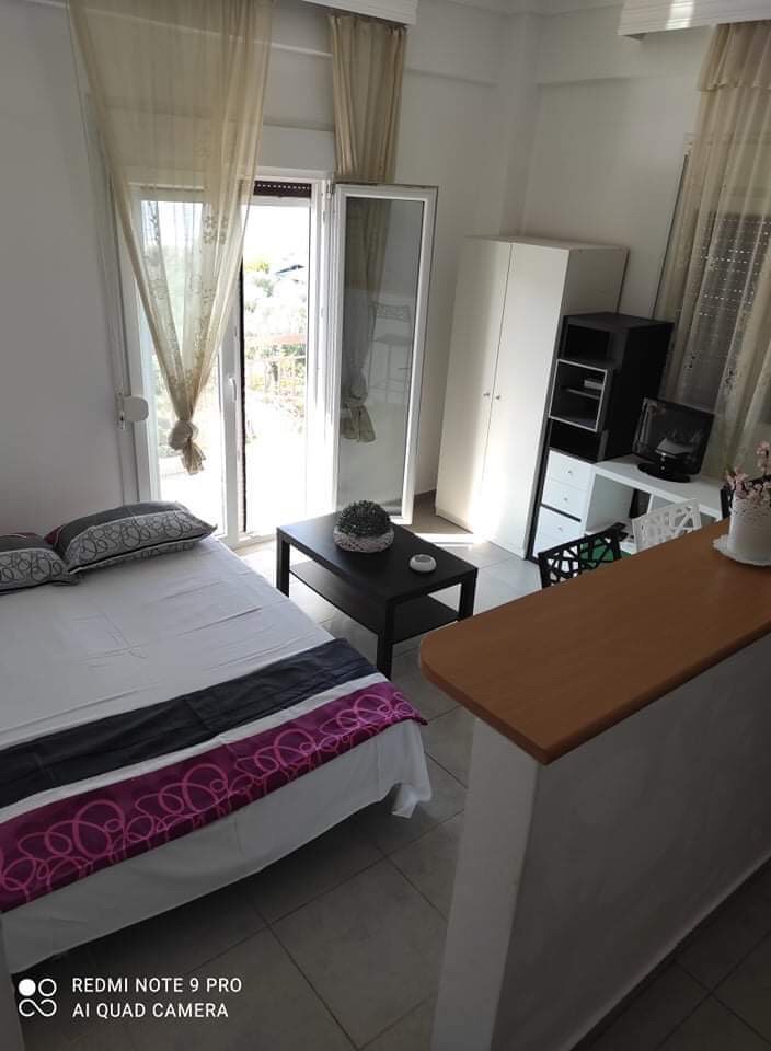 Апартмани “Mediteran” се наоѓаат на 50m од плажа/море во крајниот дел на Неа Модања, кадешто е најубавата плажа на Модања (широка плажа - ситен песок - бистра вода), и околу 400м од центарот. Вилата има голем двор со многу зеленило. Апартманите се на II кат и имат поглед на море. Распоредот е следен: дневна соба со поглед кон море / кујна со шанк, кауч на спуштање за две лица, спална соба со брачен кревет за две лица, купатило, голема аголна тераса со поглед кон море на која се излегува од двете соби. Апартманите се опремени со: голема кујна (со комплетен прибор за онолку лица према број на легла, фрижидер), тоалет, туш, балкон (масичка со столчиња), телевизор, гардеробер, клима (вклучена во цената), како и бесплатен интернет. Од дворот на вилата се излегува на плажа (најубавата плажа во Неа Модања со ситен песок, на која што има лежалки и простор за сопствен чадор и лежалки. Апартманите се наоѓаат на II кат. Гостите со сопствени возила може да паркираат на 50м од вилата. Ви посакуваме пријатен престој.
