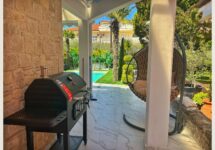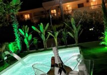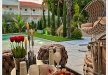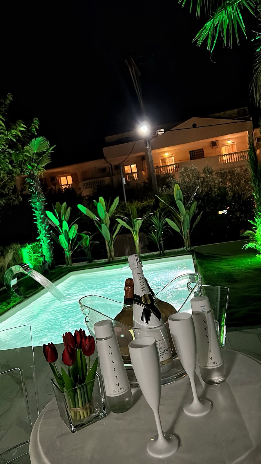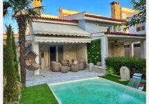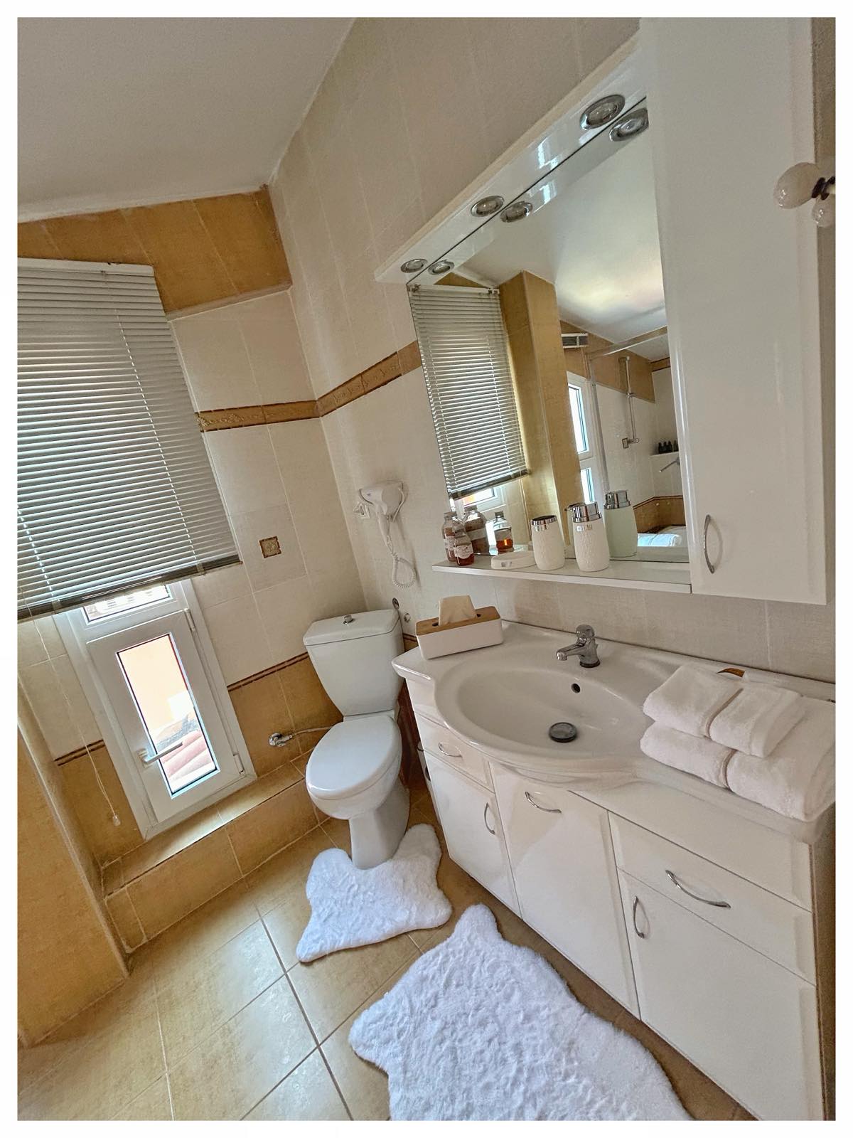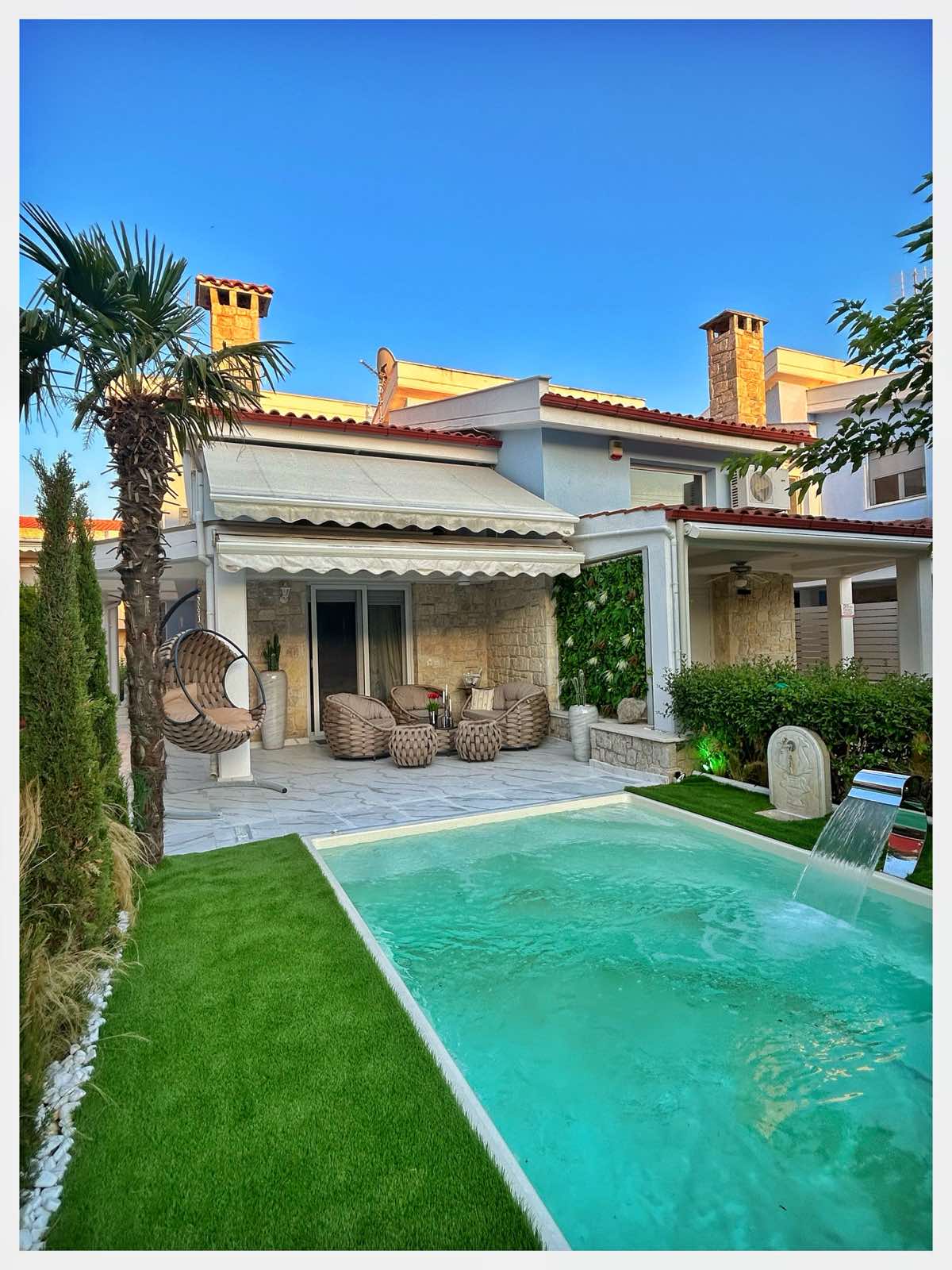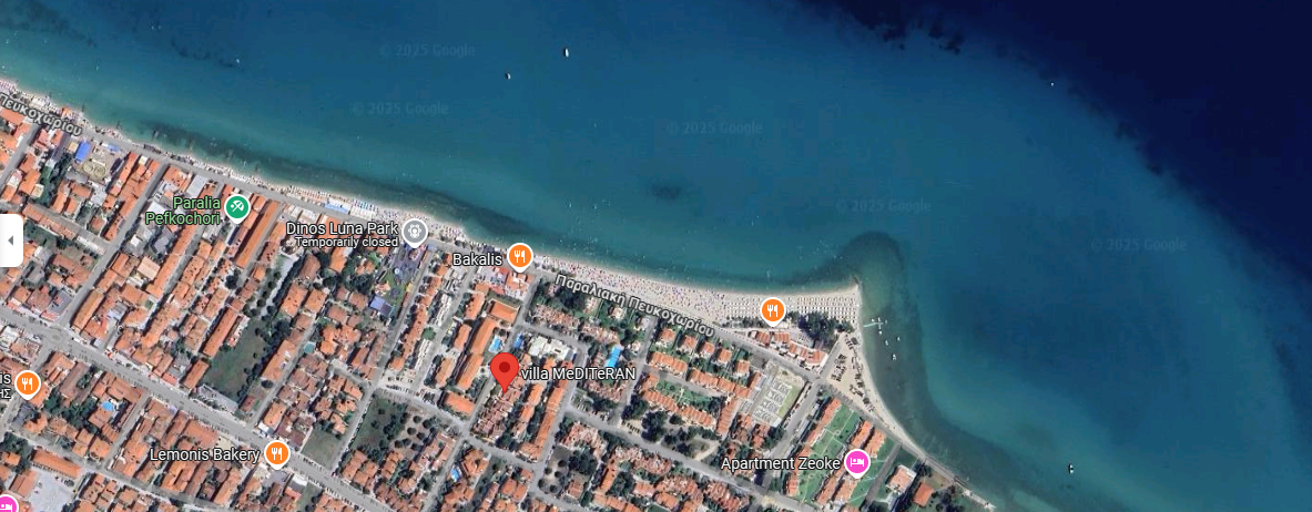 Вила “MeDITeRAN”, се наоѓа на 50m од плажа до ресторант Бакалис и Триденте Маре, плажа. Комплетно опремена премиум вила со сите потреби за идеален престој. 160м2 на III спрата - 4 спални 3 купатила, кујна со тераса, голем двор со базен и џакузи, приватен паркинг. Идеална за 8 возрасни и 2 деца. Распоред по спратови: