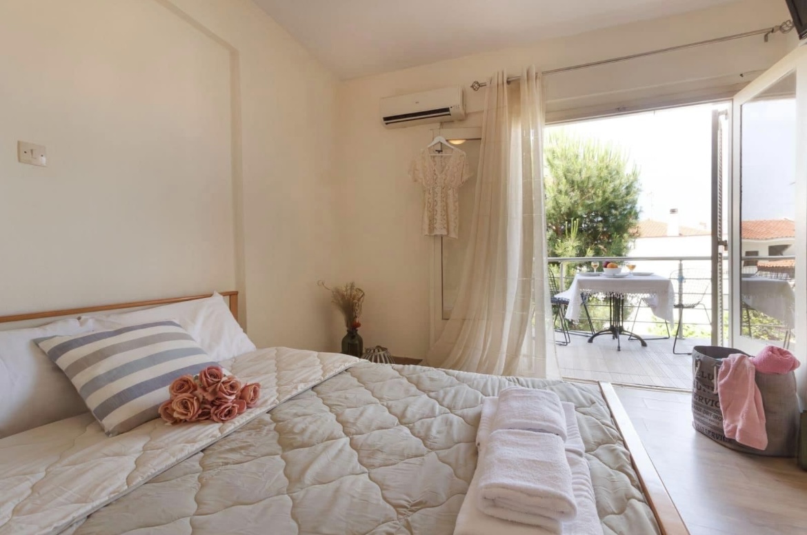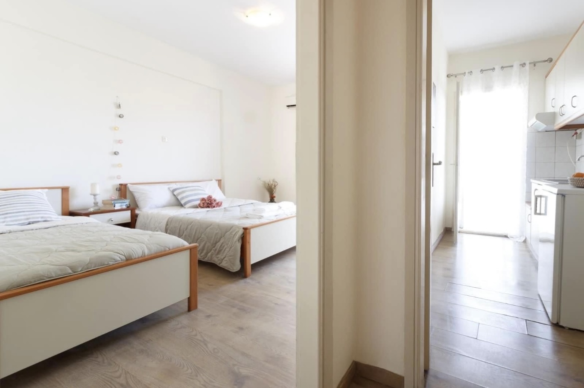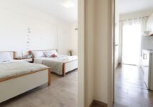 Вилата ПОПИ се наоѓа во мирен дел на само во самиот центар на градот и 150 метри од плажа. Секој апартман е опремено со кујна, бања, балкон, ТВ, WiFi и клима уред. Сите апартмани се наоѓаат на приземје. Собите располагаат со еден дупли и еден единечен кревет. Гледаат кон дворот.