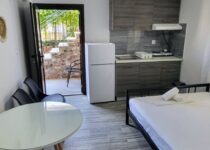 Апп бр 8 се наоѓа на приземје со поглед на градина, има брачен кревет во кујна и брачен кревет во спална.