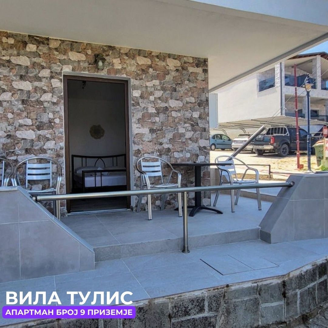 Вила Тулис (целосно реновирана) се наоѓа на 300 метри од плажа во самиот центар на Полихроно, веднаш над црквата. Вилата располага со апартмани за три, четири и дуплекс апартмани за пет лица, комплетно опремени со кујна, тоалет и тераса. За секој апартман има обезбедено приватен бесплатен паркинг, заеднички двор за дружење на гостите, иралиште за кошарка и приватна теретана. Во секој апартман на пасполагање има големи пешкири за туширање. Одличен избор за семејства. 2024 Година имавме само пофалби за комодитет, хигена, локација и гостопримство. Сите апартмани се опремени со клима уред чие користење се доплаќа 35 евра за 7 ноќевања на лице место кај газдите на вилата.