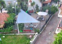 Апп бр.3 во спалната соба има брачен и единечен кревет, во кујна има софа. Препорачуваме сместување на тројца возрасни и едно дете. Поглед на градина.